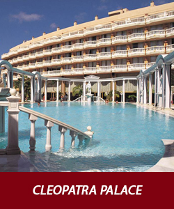 Cleopatra Palace является частью комплекса из пяти отелей Mare Nostrum Resort, который находится на юге Тенерифе непосредственно на берегу океана. Комфортабельный пятизвездочный отель располагается на первой линии рядом с песчаным пляжем. В отеле 199 номеров.
